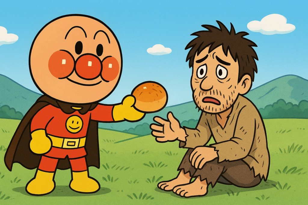 これはまさに、アンパンマンが「自分の顔をちぎって人を助ける」姿と重なります。