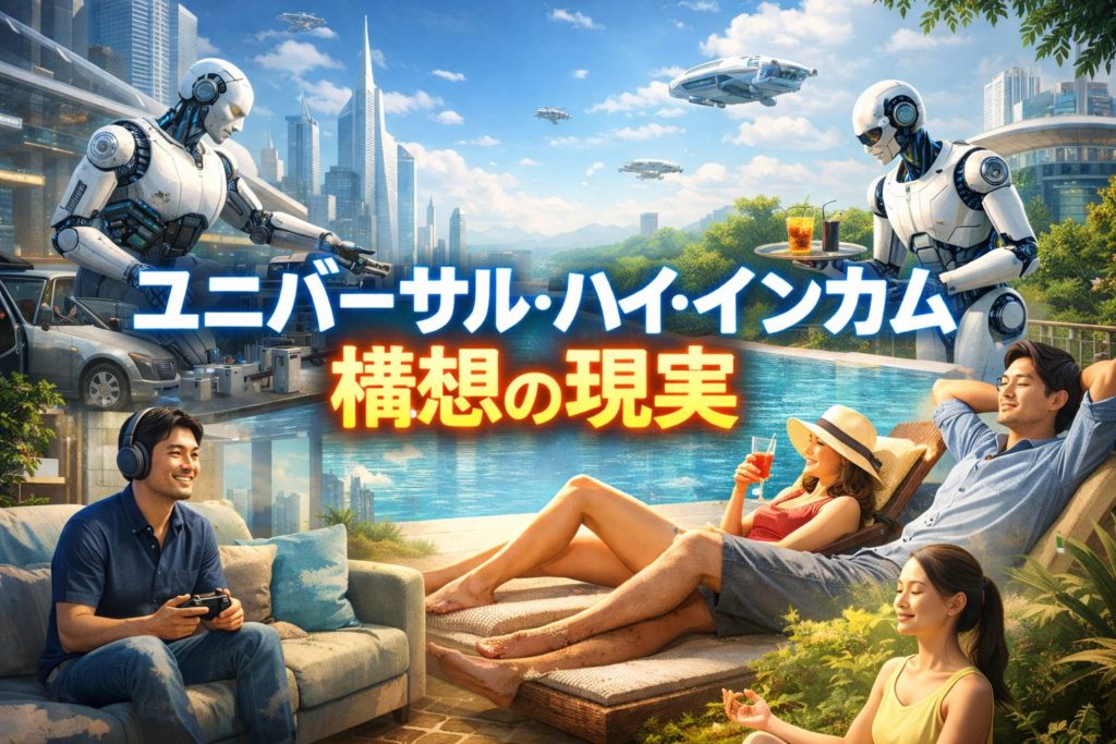 新しい視点として、30-40%のタスクがAIに取って代わられる世界で、仕事の意味が変わる。たとえば、Universal High Income(UHI)のような新パラダイムが出てくる。